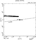 | 2002年7月14日にマイナープラネットセンターから発表された軌道に基づいて計算されたもの。 | 2002年7月24日にイタリアの研究グループのホームページであるNeoDysに掲載されていた軌道要素に基づいて計算されたもの。 | 2002年8月7日にマイナープラネットセンターから発表された軌道に基づいて計算されたもの。 | |